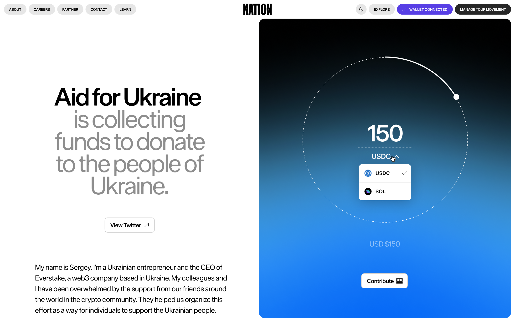 Sergey Vasylchuk (CEO of Everstake) and Anatoly Yakovenko (co-founder of Solana) collaborated with Ukraine's Ministry of Digital Transformation to create Aid for Ukraine — an organization that raised and distributed funds directly to Ukrainians following the recent Russian invasion.